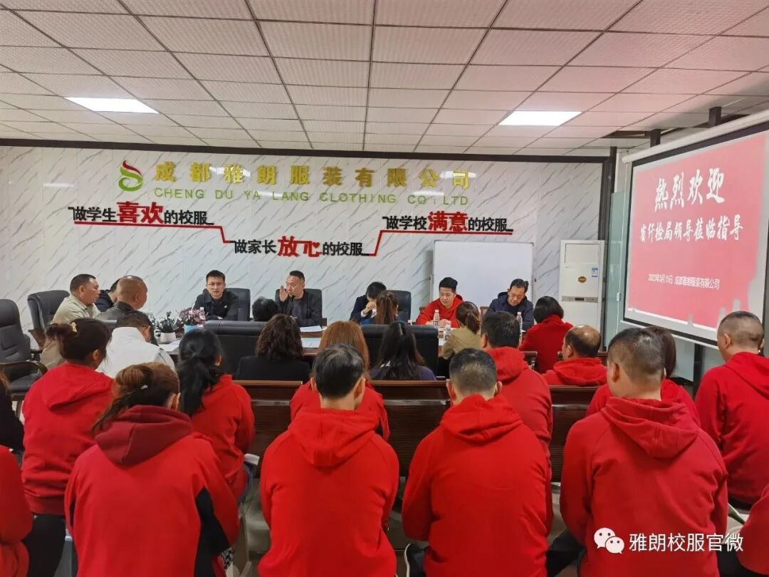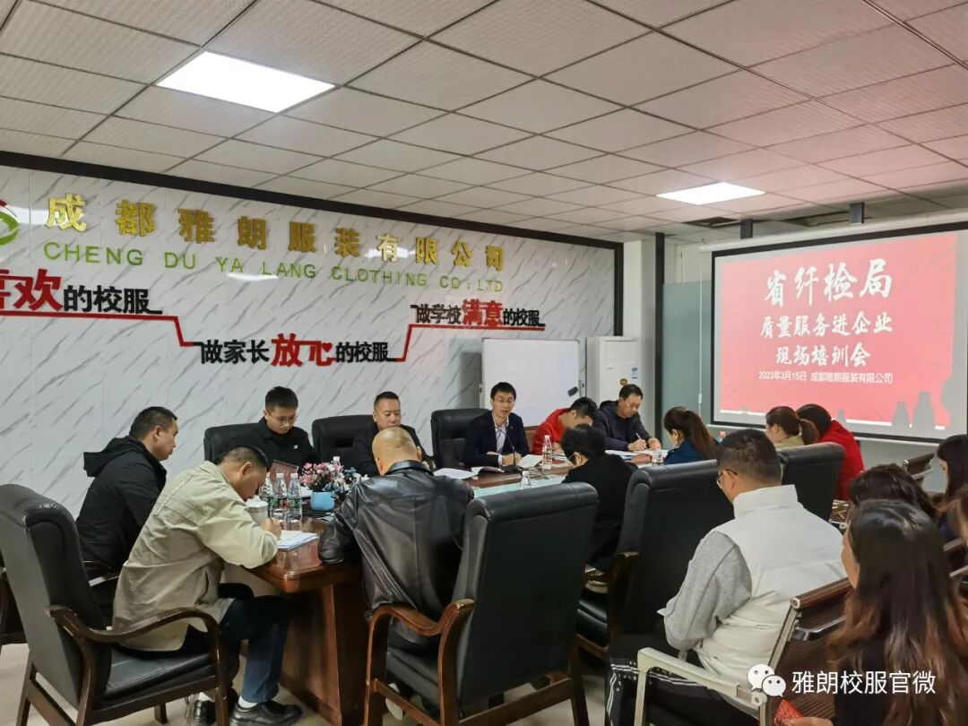 2023年3月15日,四川省纤维检验局领导一行莅临成都雅朗服装有限公司检查指导工作,公司董事长胡总及其他相关人员陪同接待。